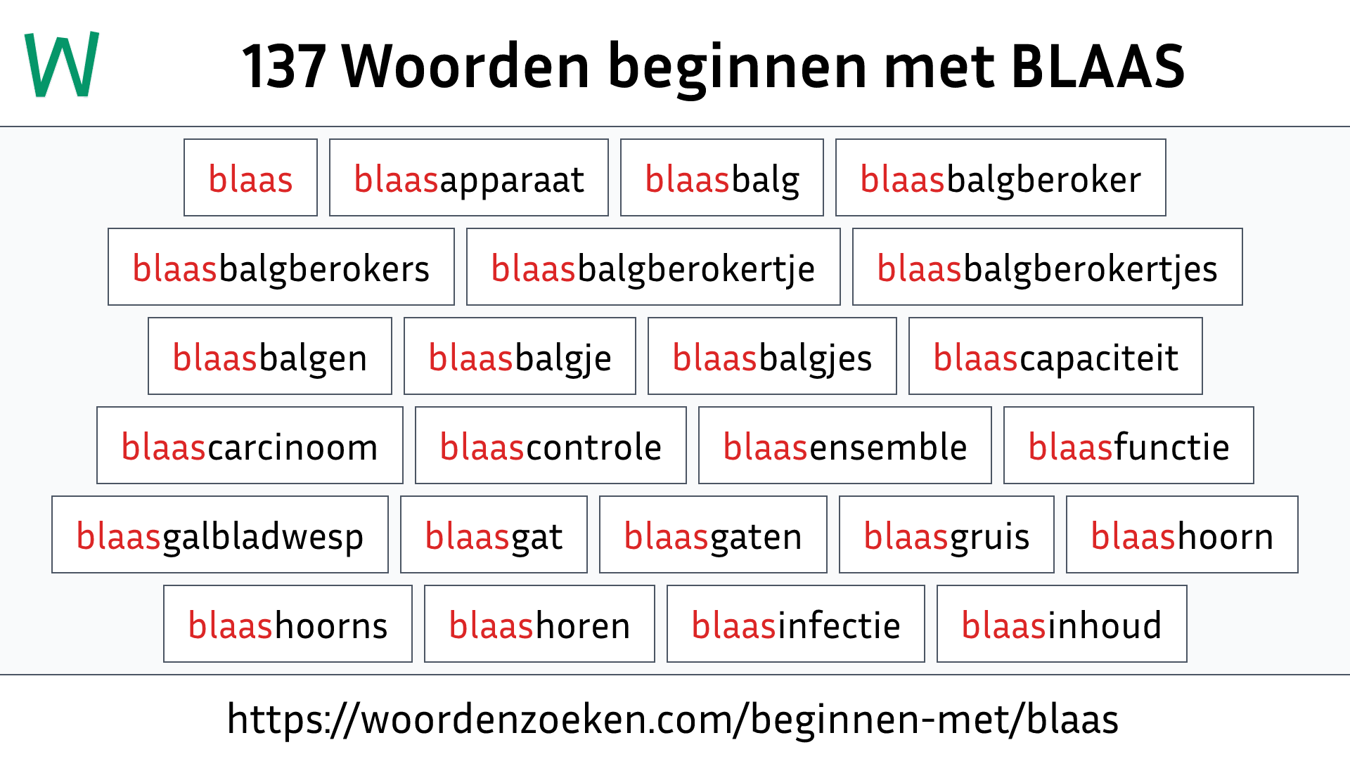 Zie ook: Woorden eindigen op BLAAS, Woorden met BLAAS, Woorden beginnen met BLAA.