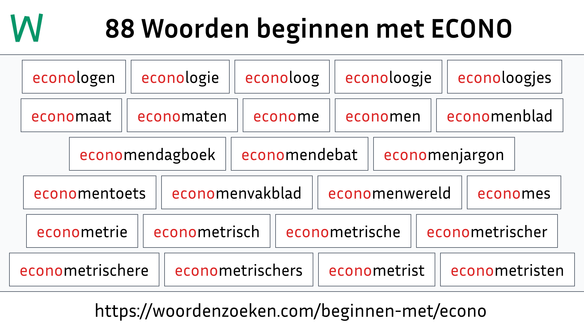 Zie ook: Woorden met ECONO, Woorden beginnen met ECON.