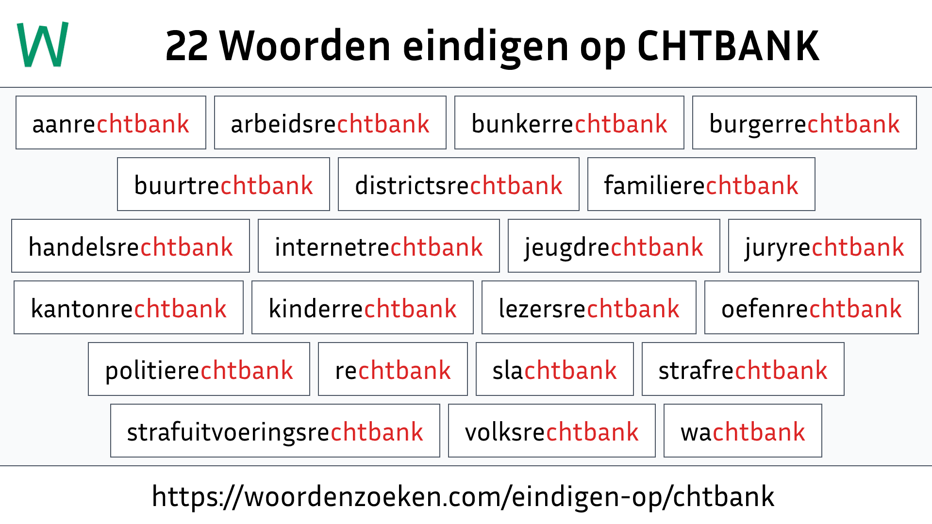 Zie ook: Woorden met CHTBANK, Woorden eindigen op HTBANK.