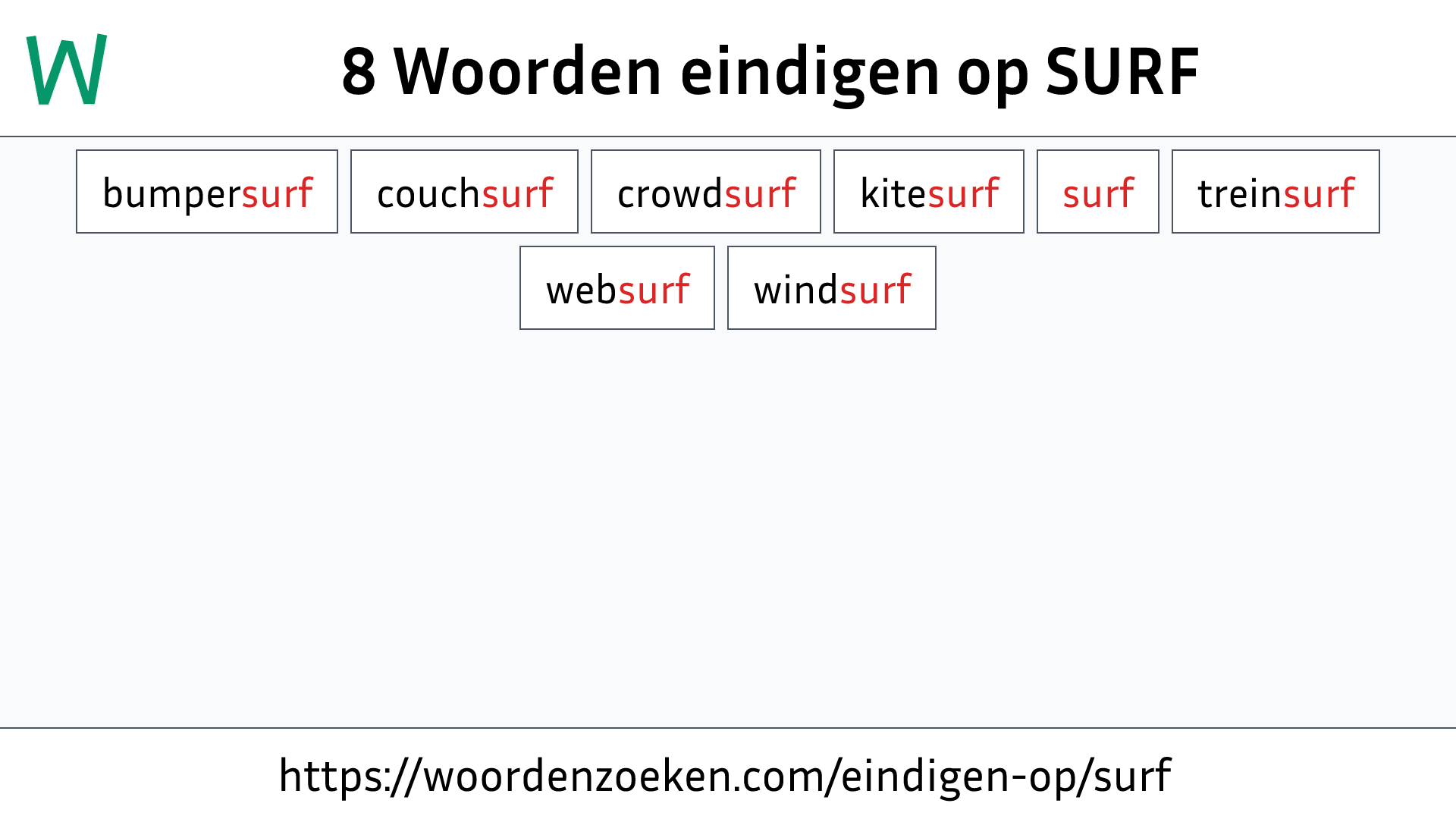 Zie ook: Woorden beginnen met SURF, Woorden met SURF, Woorden eindigen op URF.