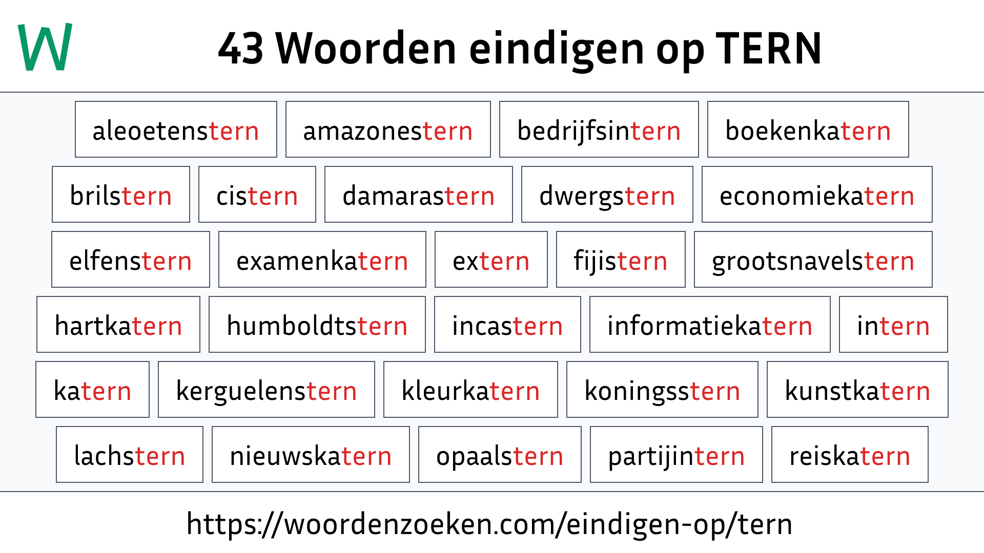 Zie ook: Woorden beginnen met TERN, Woorden met TERN, Woorden eindigen op ERN.