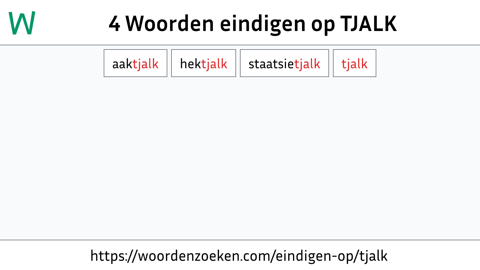 Zie ook: Woorden beginnen met TJALK, Woorden met TJALK, Woorden eindigen op JALK.