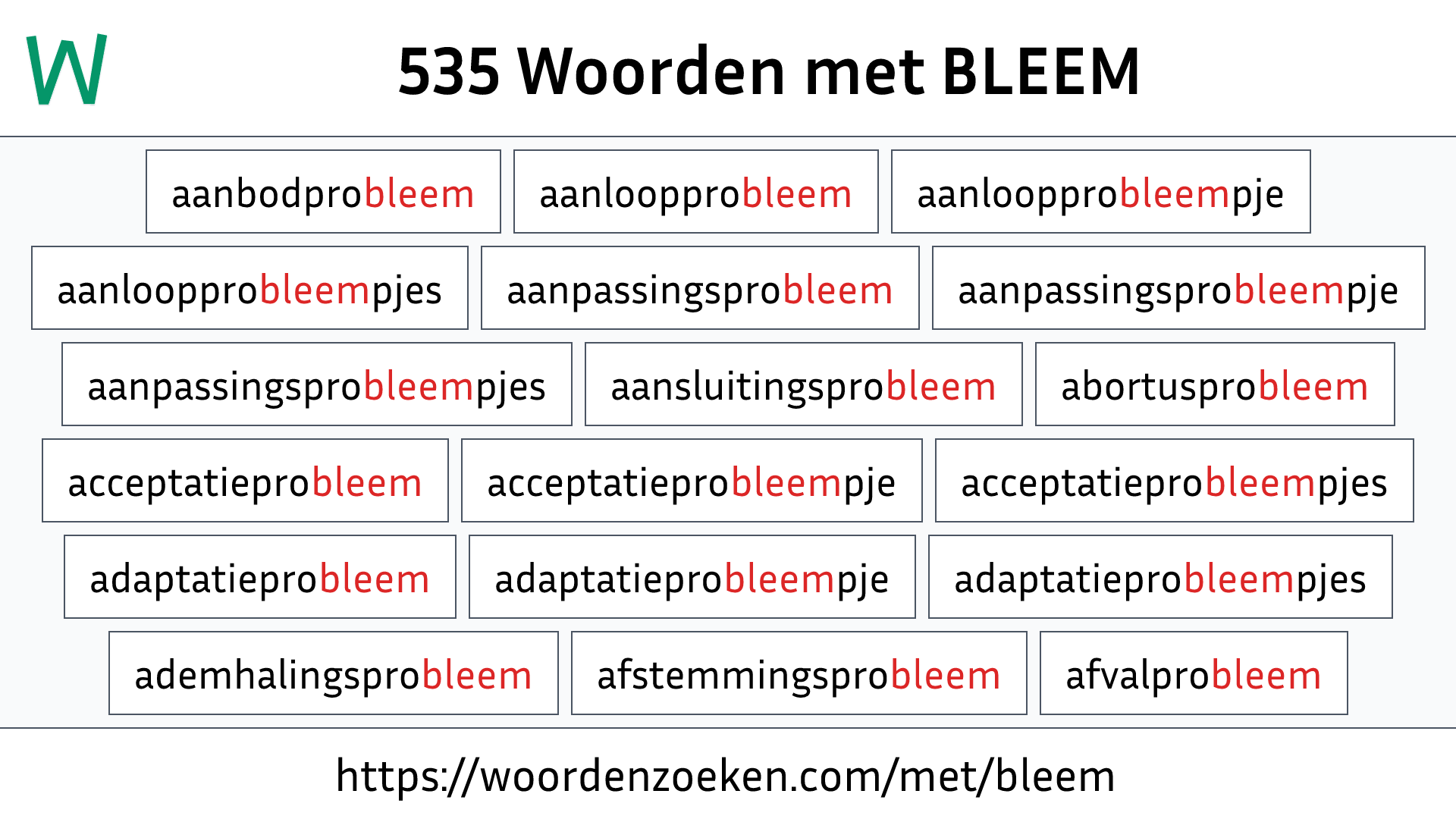 Zie ook: Woorden eindigen op BLEEM.