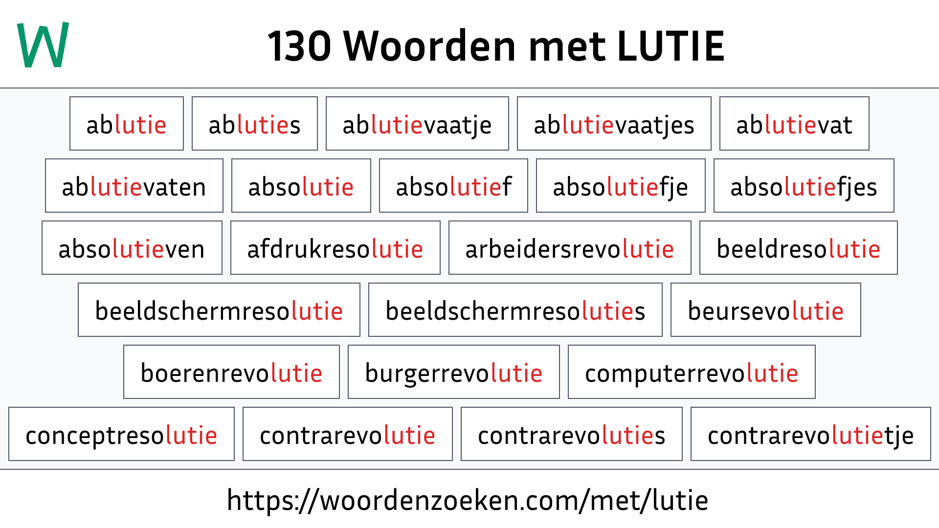 Zie ook: Woorden eindigen op LUTIE.